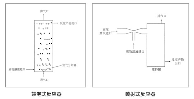5. 鼓泡式反应器:适用于游离酶、固定化酶的催化反应,可应用于分批式、流加分批式和连续式操作。结构简单,操作容易,剪切力小,混合效果好,传质和传热效率高,适合于有气体参与的反应。