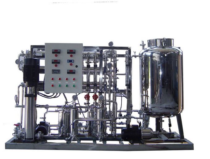 2、预处理-一级反渗透-加药机(PH调节)-中间水箱-二级反渗透-纯化水箱-纯水泵-紫外线杀菌器-0.2或0.5μm精密过滤器-用水对象